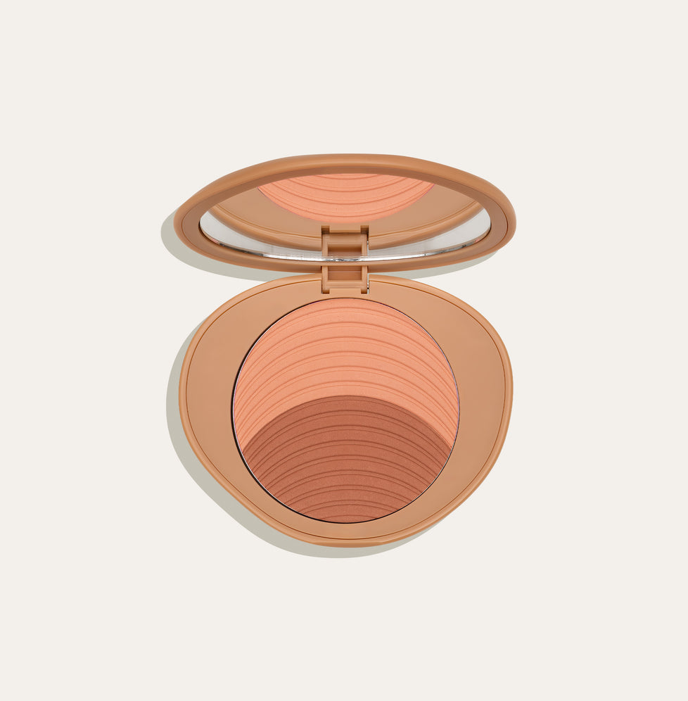 A two-tone soft blush that blends seamlessly for a fresh, healthy flush.